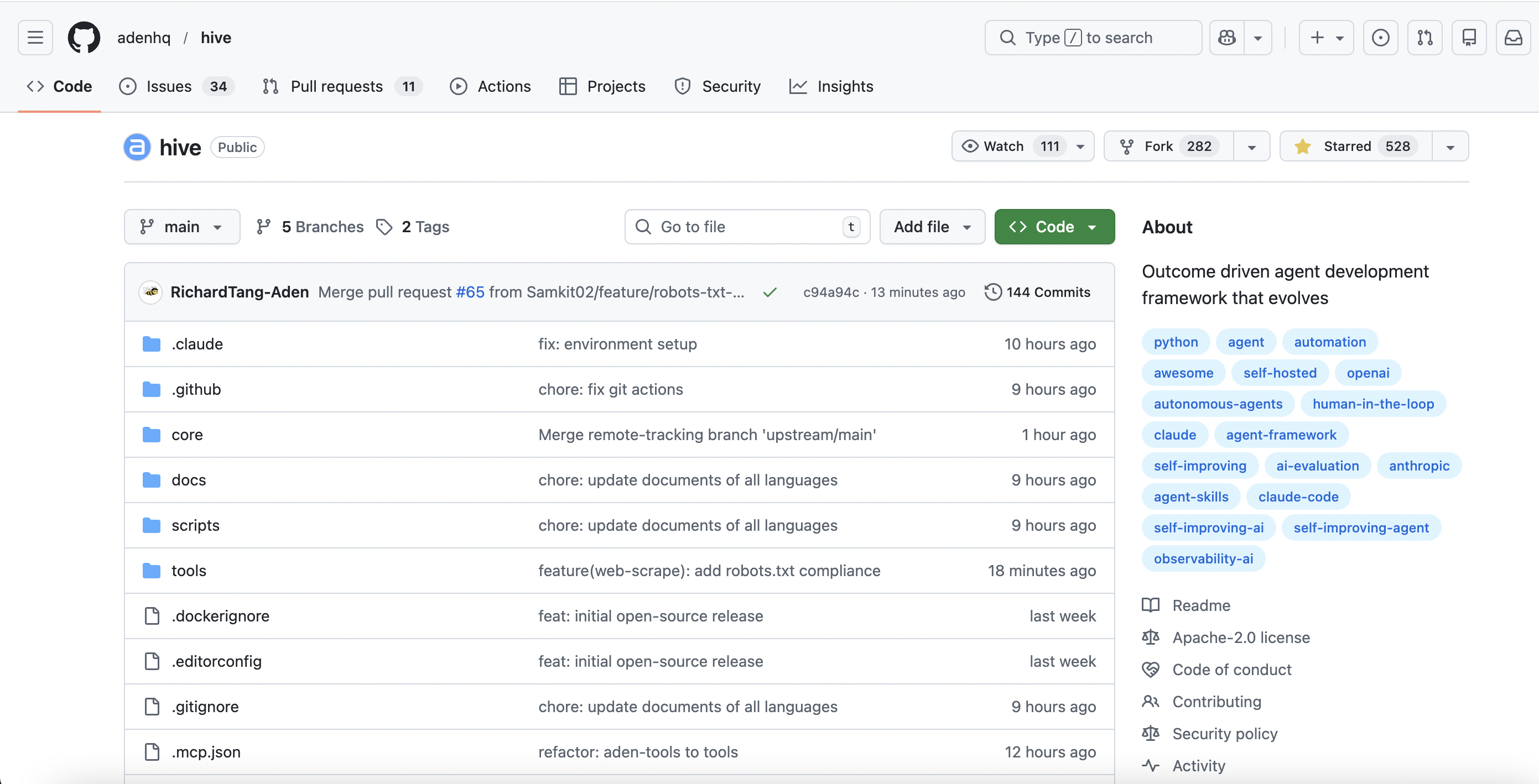 Move beyond brittle, static workflows. Aden transforms natural language intent into a recursive, self-refactoring "Hive" of agents. Deploy a production-grade digital workforce that learns from failure and evolves its own logic in real-time.